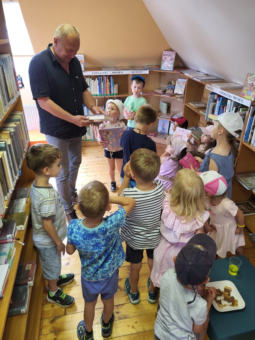 Moc nás potěšilo, když děti z MŠ Návojná a paní učitelka opět přijaly naše pozvání do místní knihovny. Protože tu nebyly poprvé, děti si hned vybíraly a prohlížely knížky, hry, bylo veselo a nikdo se nenudil.